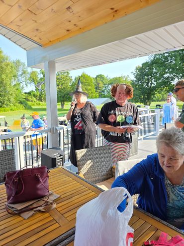 August 2, 2025 the Manzer twins outdid themselves once again (as always) with their annual "Twins Wide Open" at the Cedars Golf Course on the East Road in Lowville. This Captain and Crew event was a shotgun start, themed "The Wizard of Oz," at 9 a.m. on this beautiful 18 hole course. Lunch was served and prizes were awarded. Door prizes were numerous! It was another fun-filled golfing day. Sadly, this was the last "Twins Wide Open." The Martinsburg Historical Society is forever grateful to these ladies for being so generous in time, effort and fun, as well as the funds given to support the historical society these last 20 years. The Society was unable to surprise these ladies and so it was announced at the start of the tournament that they would both be honored at Martinsburg Day as "Citizens of the Year."